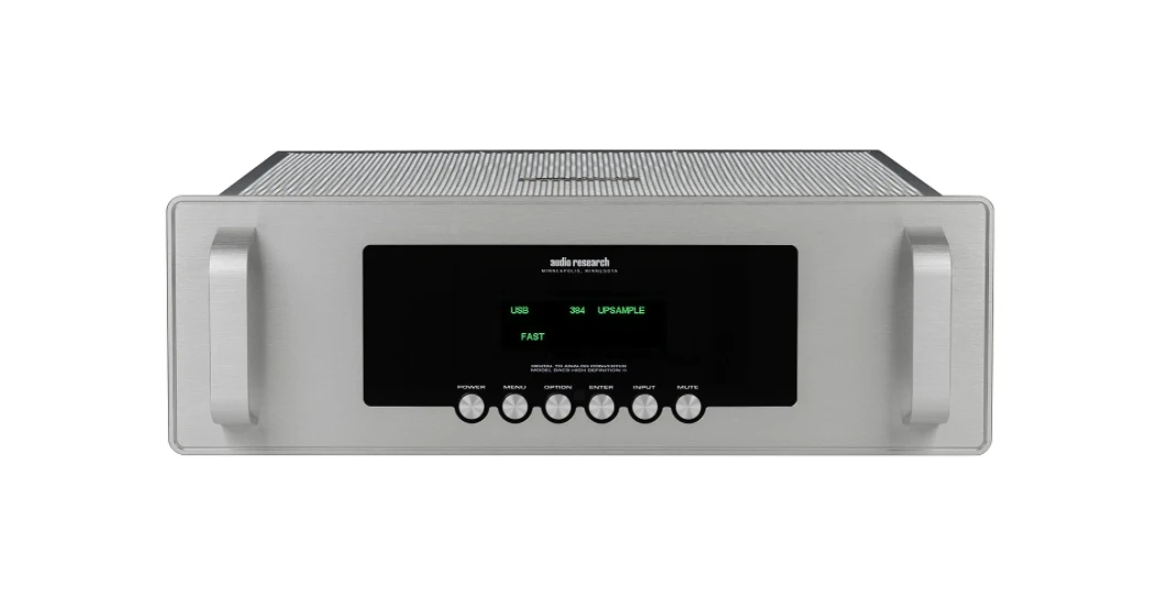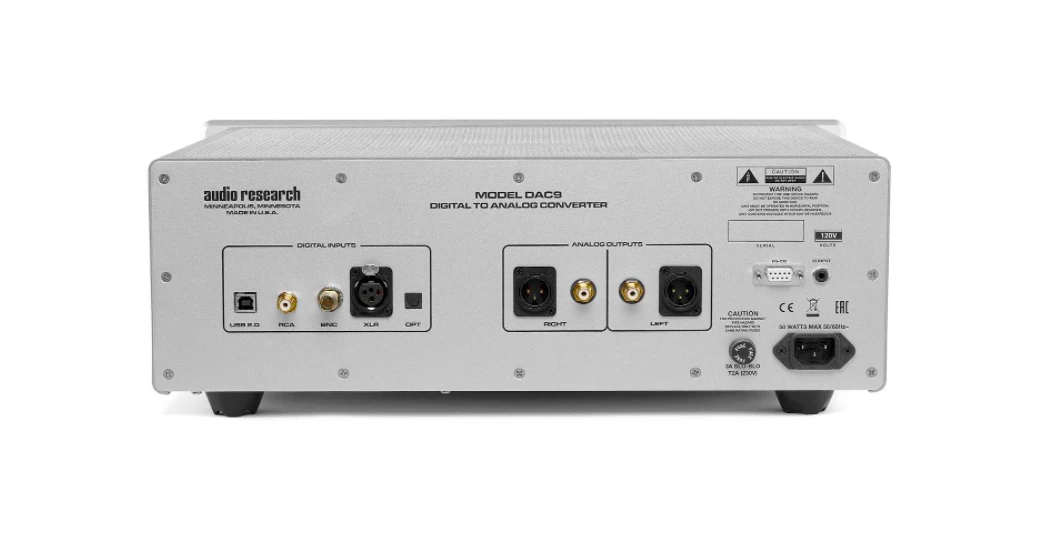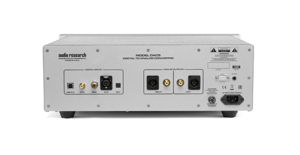 The DAC9 digital-to-analog converter decodes most current formats with state-of-the-art vacuum tube technology. Five digital connections – USB, RCA, BNC, AES/EBU, and Toslink – provide connectivity to all of your digital sources. Quad DAC architecture provides a balanced digital signal, wide dynamic range, and decoding resolutions from red book CD up to 384 kHz and native DSD sampling rates. A pair of 6H30 vacuum tubes are the heart of the analog circuit. Both balanced and single-ended connectors are provided for output connectivity. Native-rate upsampling and selectable digital filters allow customization of the digital signal.