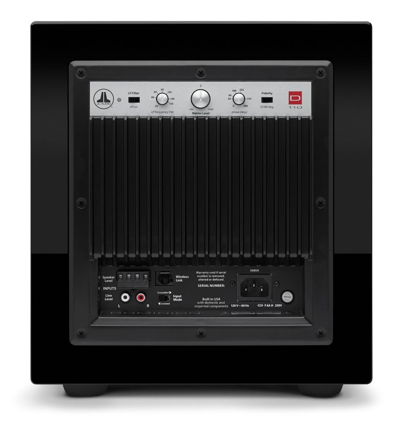 With a host of signal processing features included, Dominion® powered subwoofers can be integrated into most systems with ease. Low-pass signals are precisely guided, thanks to the onboard crossover’s 24 dB/octave Linkwitz-Riley alignment. Phase and polarity controls are onboard to aid in achieving the optimal acoustic transition between the subwoofer(s) and main speakers. Flexible input options are on-hand to accept either line-level or speaker-level signals. Connect a JLINK™ TRX system (sold separately) to the onboard Wireless Link port and enjoy the freedom to position your Dominion® almost anywhere, up to 100 feet (30 meters) away from your source unit.