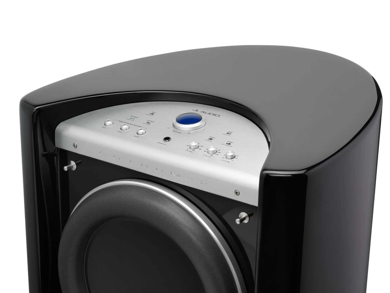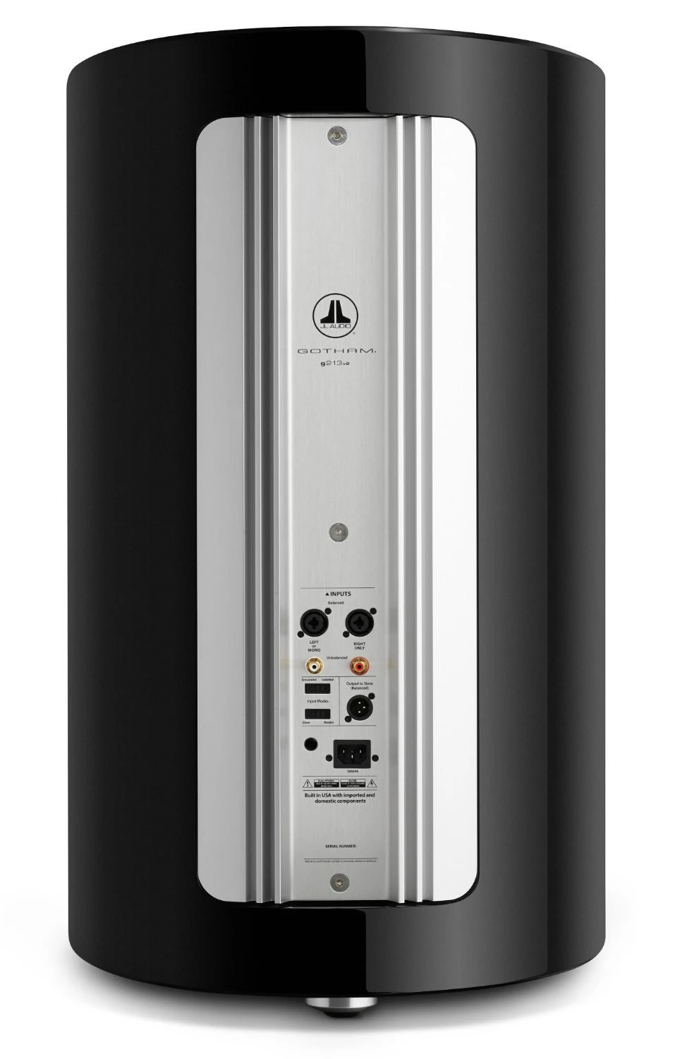 A luxurious, handcrafted gloss-black finish is complemented by machined aluminum and stainless steel accents for a look and feel that fits perfectly with the finest home furnishings. More importantly, the beautiful cabinet houses a pair of JL Audio’s highest-technology Subwoofers. When demanded by program material, the Gotham’s prodigious switching amplifier can deliver 4500 watts of RMS power, to take full advantage of the twin drivers’ four inches of peak-to-peak excursion capability. This ensures that the Gotham can breeze through material that makes other subwoofers go into clipping, limiting or distress.