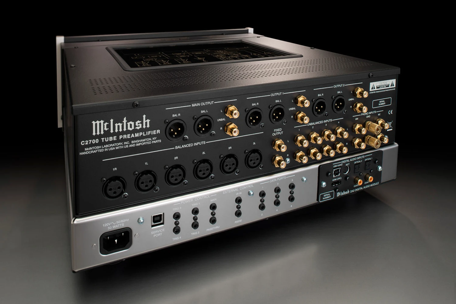 Following in a long line of revered McIntosh vacuum tube preamplifiers is the C2700 Tube Preamplifier. Using our well-established vacuum tube topology, the C2700 also features our advanced DA2 Digital Audio Module technology to combine cutting edge digital music capabilities with time tested vacuum tube performance.