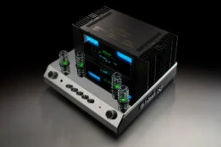 - Hybrid design: vacuum tube preamp and solid-state power amp