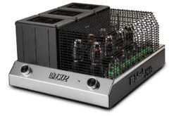 The MC1502 is powered by eight KT88 output vacuum tubes, with four assigned to each stereo channel. It also has eight small signal tubes, consisting of four 12AX7A and four 12AT7 vacuum tubes; two of each of these vacuum tubes are dedicated to each audio channel. The 12AX7A vacuum tubes are for the Balanced and Input amps, while the 12AT7 tubes are for the Voltage and Driver amps. All the vacuum tubes are covered by a 12-gauge stainless steel wire cage with a black powder coated finish.