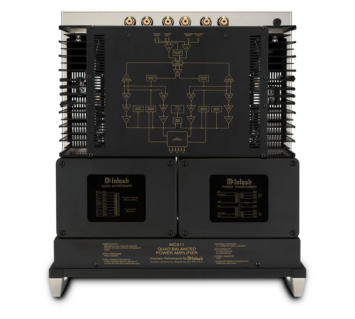 The monoblock MC611 Quad Balanced Power Amplifier produces 600 Watts of power – enough to satisfy nearly any loudspeaker. A pair of MC611s can easily drive an impressive home stereo system, or add more of them to power a home theater. Thanks to our unique output Autoformer™ technology, your speakers will receive the full 600 Watts regardless if they have 2, 4 or 8 Ohm impedance, allowing you the ability to use the MC611 to its full potential.