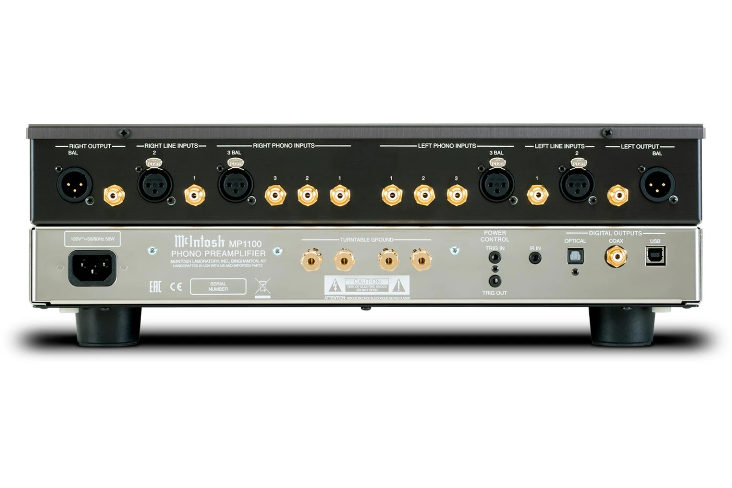 The MP1100 is designed first and foremost for analog audio and achieves our most accurate equalization ever. It utilizes four 12AX7A vacuum tubes, with 2 tubes used per channel in a fully balanced configuration – making it our very first fully balanced vacuum tube phono stage. For those with multiple turntables or tonearms, there are 3 sets of RCA phono inputs; XLR connectors are also available on 1 of the inputs. All phono inputs allow for adjusting both resistance (7 settings) and capacitance (8 settings). For ease of use, it comes pre-programmed with profiles for Moving Coil and Moving Magnet cartridges as well as the McIntosh MT10 and MT5 turntables. Five additional profiles are included that are fully customizable and can be assigned to any phono input. RIAA, LP, NAB, AES and 78 analog equalization curves are included.