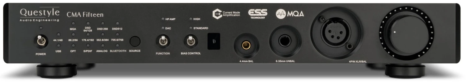 Questyle CMA Fifteen is the latest evolution in Questyle’s ultra-high performance compact headphone amp/DACs. In addition to Questyle’s well-known proprietary technologies, the CMA Fifteen includes analog inputs, allowing it to serve as the preamp/DAC hub for a simple audio system of extraordinary performance and reasonable cost.