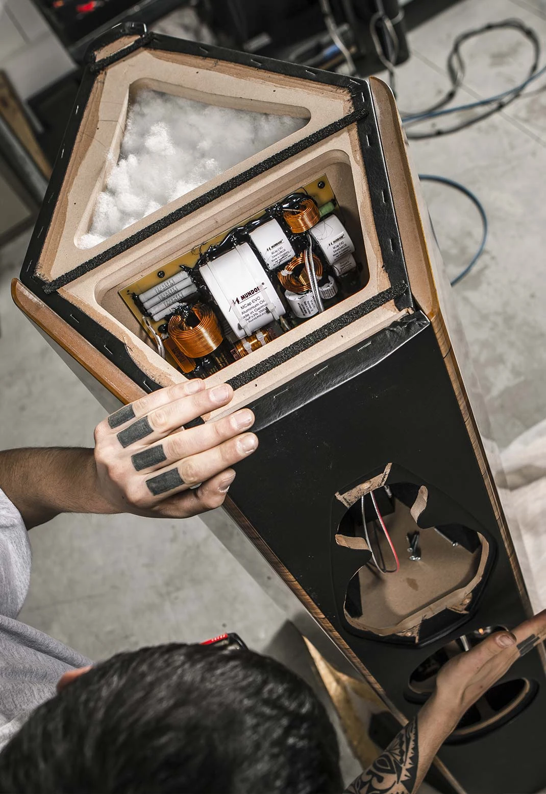 This is what we have in mind in designing the “acoustic environment” of every single transducer. Each volume is insulated with different materials from open cell thermoplastic foam to fibrous materials, similar to the felt used in pianos. The most appropriate material or materials are selected for each specific application.
