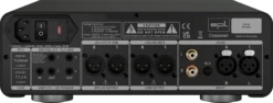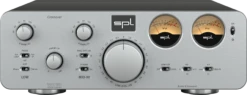 Two mechanical VU meters visualize the input levels for the left and right audio channel.