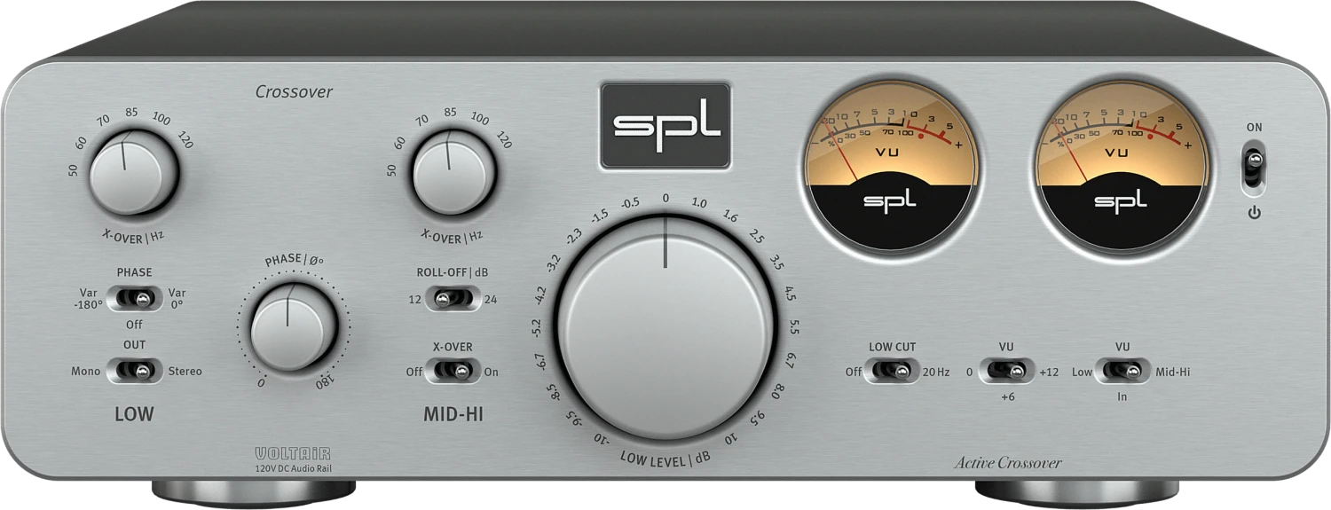 The crossover frequencies for Low and Mid-Hi can be set individually from 50 Hz to 120 Hz in 6 positions.