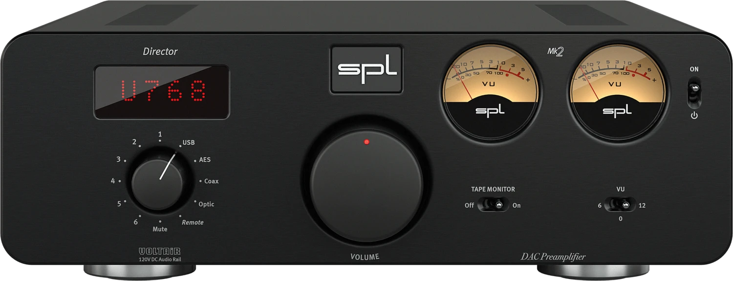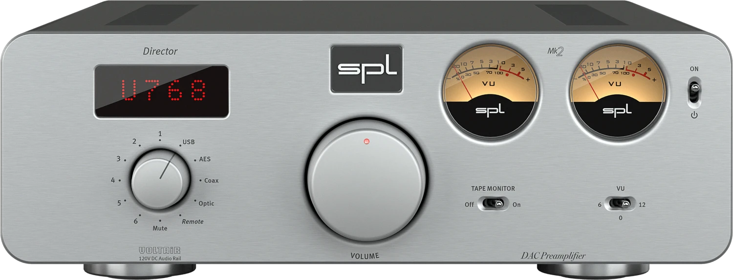 The central unit of the HiFi system is the preamplifier. With remote source selection and volume control, tape monitor path, retro-look-VU-meters, premium DA-converter and the all superior VOLTAiR technology, the Director Mk2 caters for musical blockbusters.